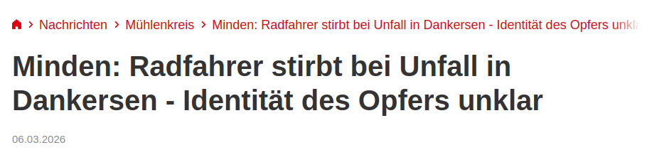 Immer mal wieder, wenn wir auf unseren Treffen zusammensitzen, sind Unfallberichte aus der Zeitung Thema unserer Gespräche. Dabei ärgern wir uns oftmals darüber, wie über den Vorfall berichtet wird. Je länger wir uns mit dem Thema beschäftigt haben, desto mehr wurde aber ein grundsätzliches Problem deutlich, das uns mittlerweile viel wichtiger ist: Diese Berichte sind leider aktive Beiträge dazu, die Verkehrswende zu verhindern. Das mag Ihnen momentan noch etwas weit hergeholt erscheinen, wird aber im Laufe des Abends deutlicher werden.